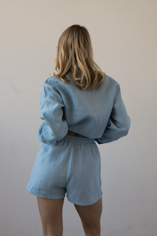 Lněné šortky sky blue