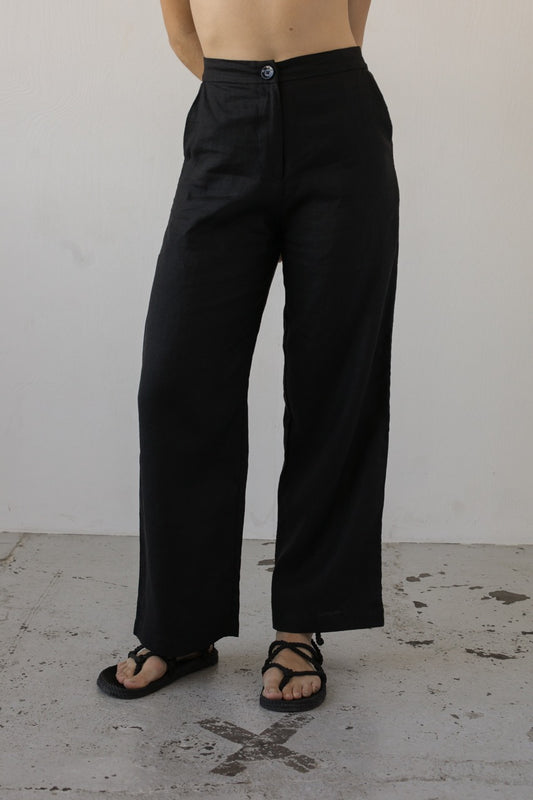 Lněné kalhoty černé